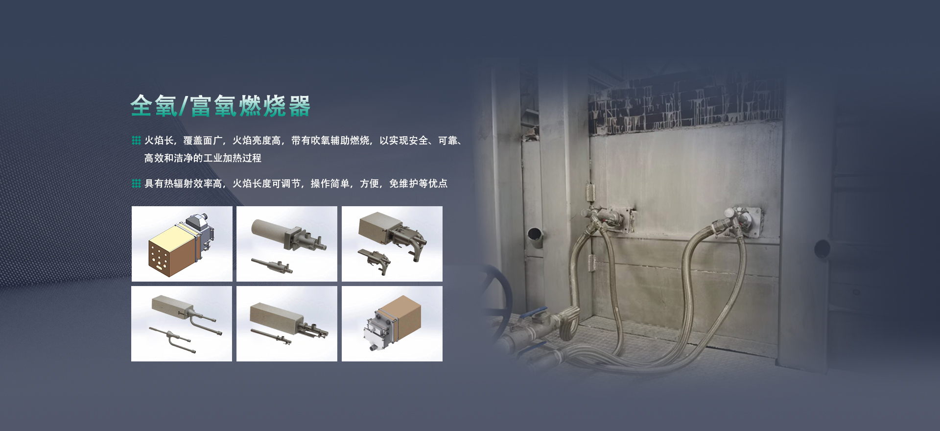 無錫杭控專注于燃燒設備的研發(fā)和設計,使得我們的產(chǎn)品組合不斷完善,產(chǎn)品包括天然氣+氧氣全氧燃燒系統(tǒng)、焦爐煤氣+氧氣全氧燃燒系統(tǒng)、石油焦粉+氧氣全氧燃燒系統(tǒng)、重油+氧氣全氧燃燒系統(tǒng)、油氣兩用全氧燃燒系統(tǒng)、富氧燃燒設備、天然氣還原系統(tǒng),低氮燃燒器、各種全氧燒嘴等。產(chǎn)品應用于玻璃、有色金屬冶煉、鋼鐵、搪瓷、建材、化工等工業(yè)加熱及助熔領域...
